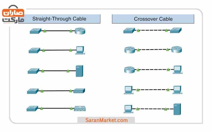 تفاوت کابل شبکه Crossover با Straight به طور عمده در کاربرد و نوع اتصال آنها در شبکه های مختلف مشخص می شود. کابل های Straight معمولاً برای اتصال دستگاه های غیر مشابه در شبکه های اترنتی استفاده می شوند. به عنوان مثال، این کابل ها به طور رایج برای اتصال کامپیوتر به روتر، کامپیوتر به سوئیچ و همچنین روتر به سوئیچ به کار می روند. این نوع اتصال به دلیل همسان بودن پین ها در هر دو انتهای کابل، امکان برقراری ارتباط صحیح بین دستگاه ها را فراهم می آورد.