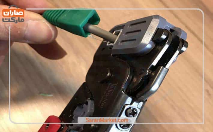 • حال نیاز است تا سیم‌هایی که در درون کابل قرار گرفته‌اند را از کاور خارج کنید. برای انجام این کار می‌توانید از استریپر و یا سیم‌کش مخصوص کابل‌های شبکه کمک بگیرید. استریپر دارای محفظه‌ای مخصوص برای قرار دادن کابل‌های شبکه بوده و شما می‌توانید کابل را در این قسمت قرار دهید. حال کافی است تا استریپر را به ‌دور کابل بچرخانید تا تیغه تعبیه شده آن، کاور را برش داده و اجازه جدا شدن از سیم را به شما بدهد. بین ۴ تا ۵ بار چرخاندن استریپر می‌تواند کفایت کند. به یاد داشته باشید که چرخاندن بیش از اندازه می‌تواند به سیم‌های موجود درون کاور لطمه وارد کرده و آن‌ها را برش دهد. نکته مهم دیگر در این مرحله این است که شما باید بسته به نیاز سوکت زدن کابل شبکه، سیم‌ها را از کاور جدا کنید. در صورتی‌ که سیم بیشتری را از پوشش کابل خارج کنید، به دلیل نداشتن کاور محافظ، سیم‌ها در معرض آسیب قرار خواهند گرفت.
